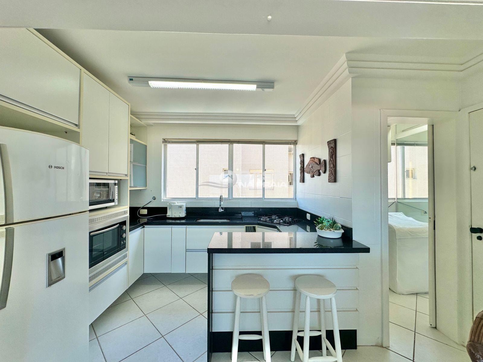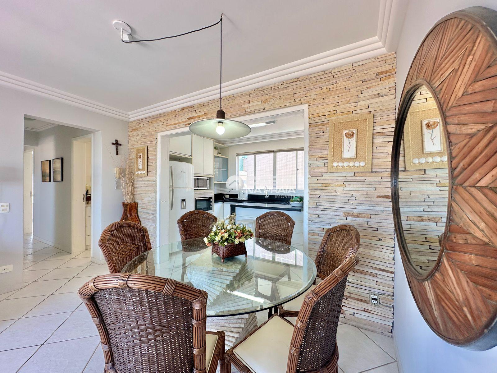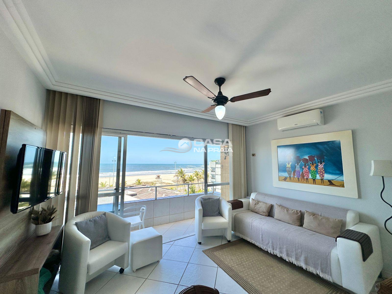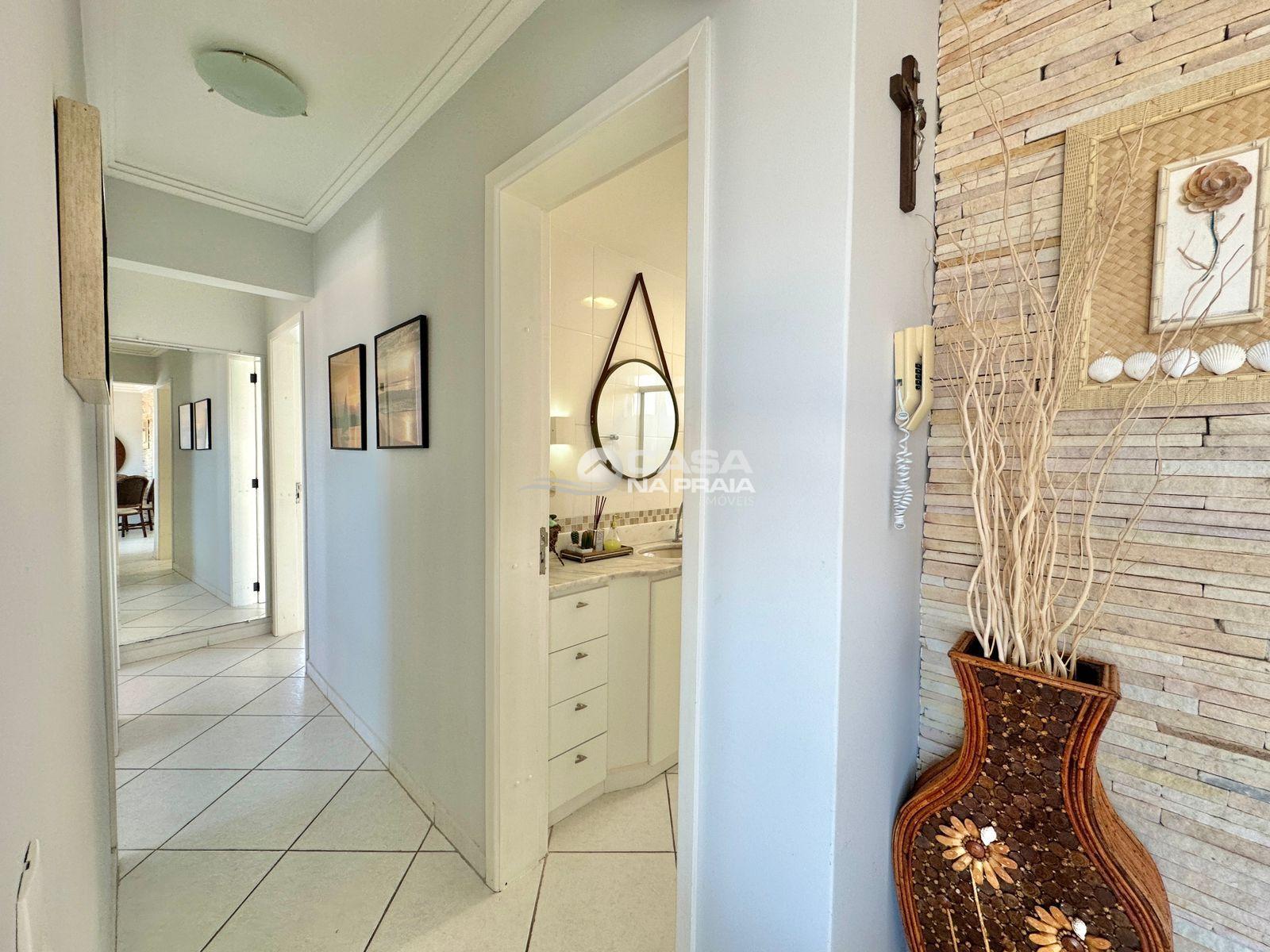 Possui 03 quartos (01 suíte), sala de estar e jantar integradas, sacada com vista para o mar, cozinha equipada, área de serviço e banheiro social. Conta ainda com Wi-Fi e 02 vagas de garagem.