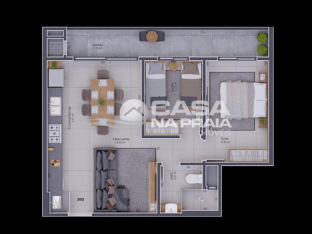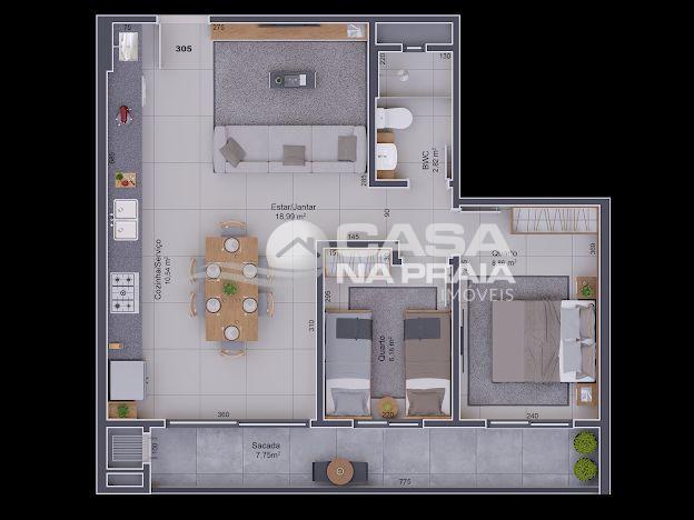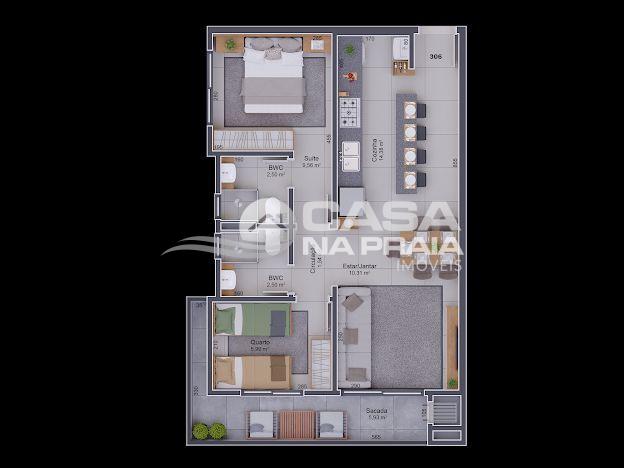 Área privativa a partir de 58,56 m² e área total de 85,04 m².