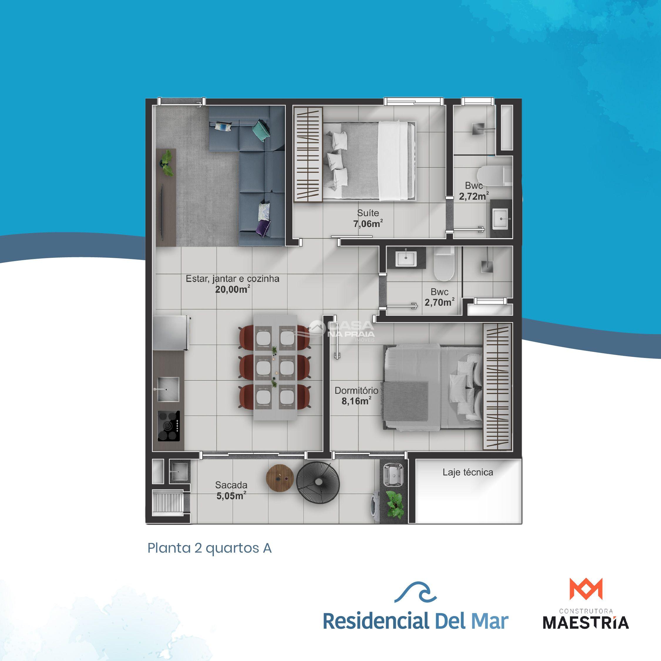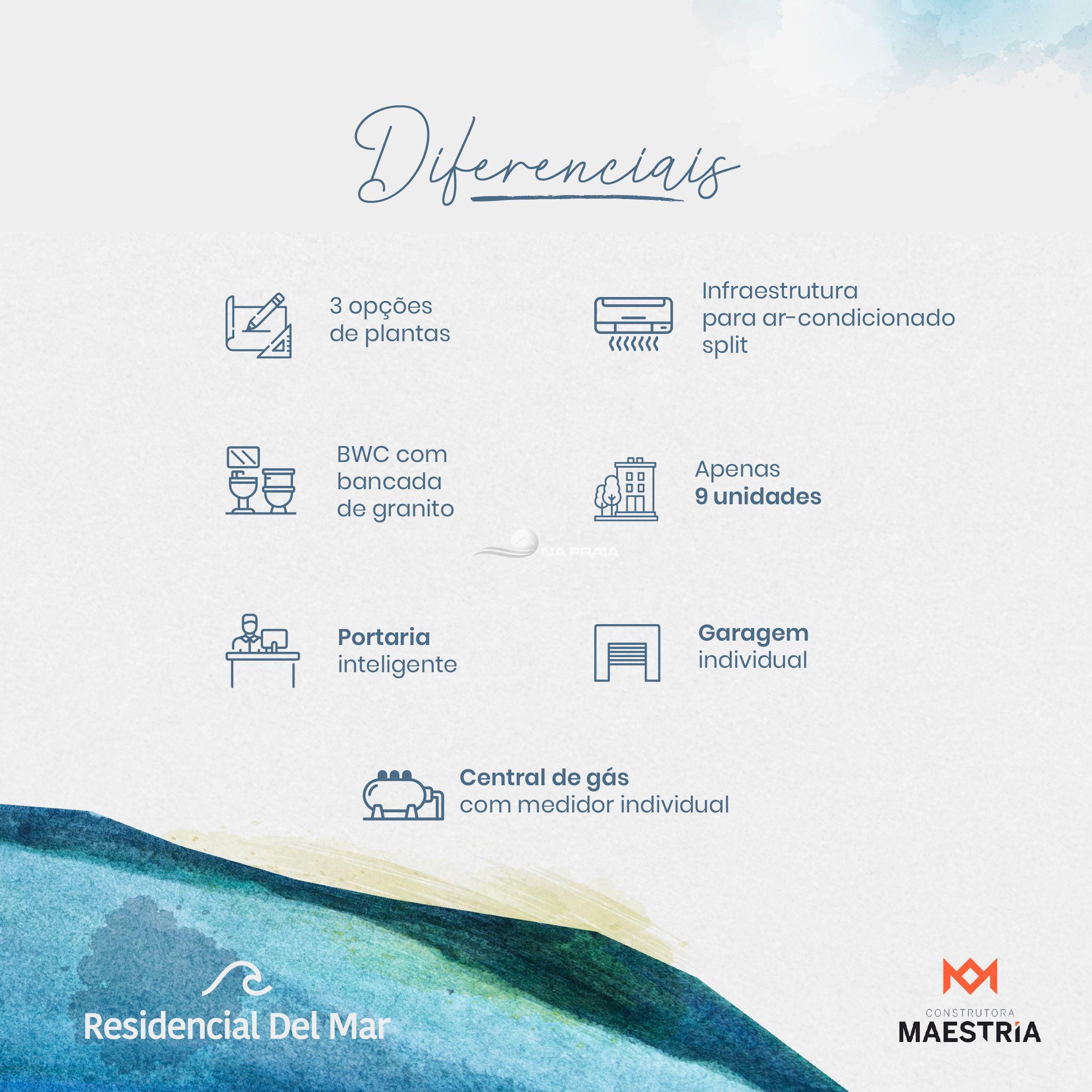 Residencial Del Mar com 03 tipos de plantas, todos os apartamentos com para ar condicionado.