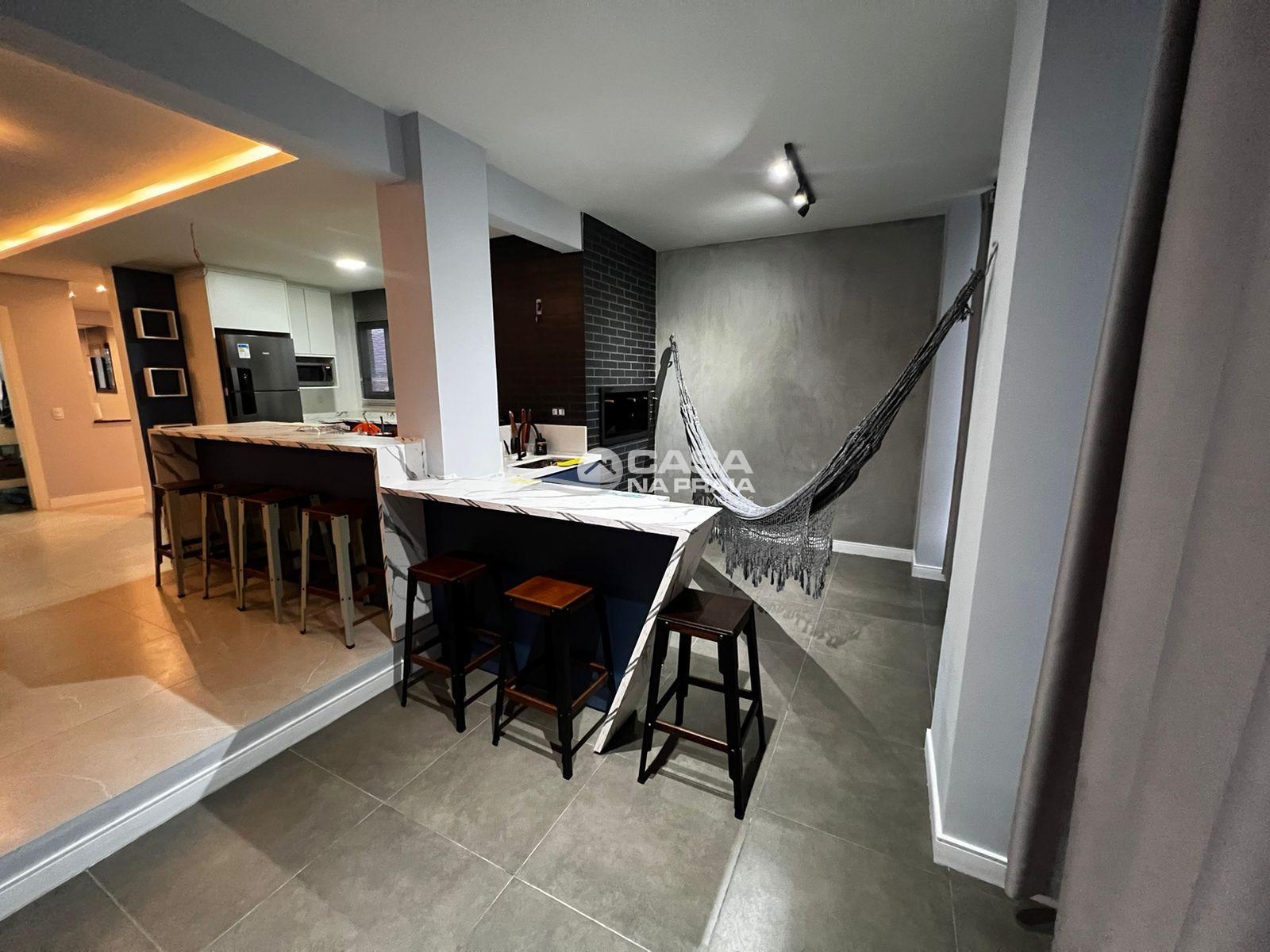 - Cozinha e espaço gourmet integrados com churrasqueira à carvão