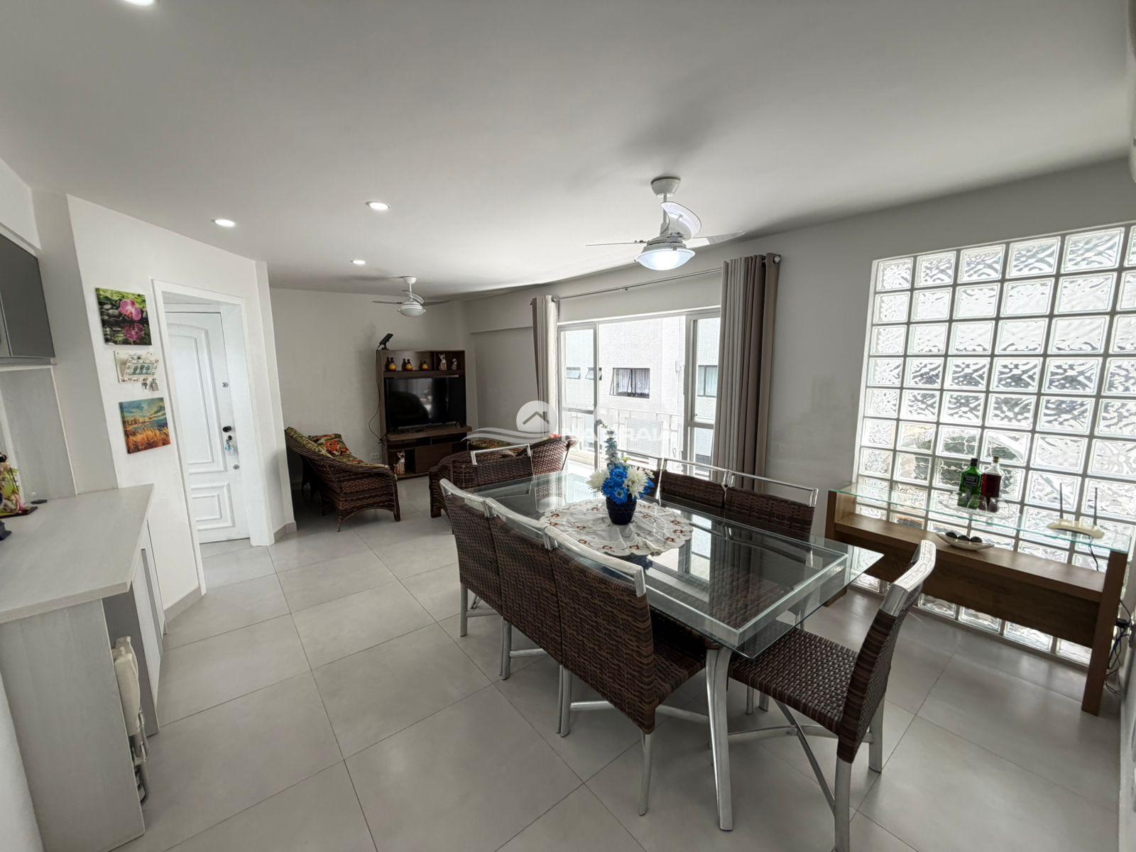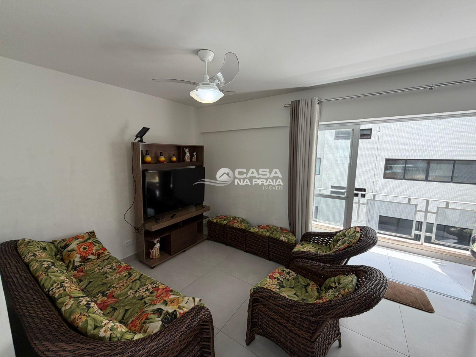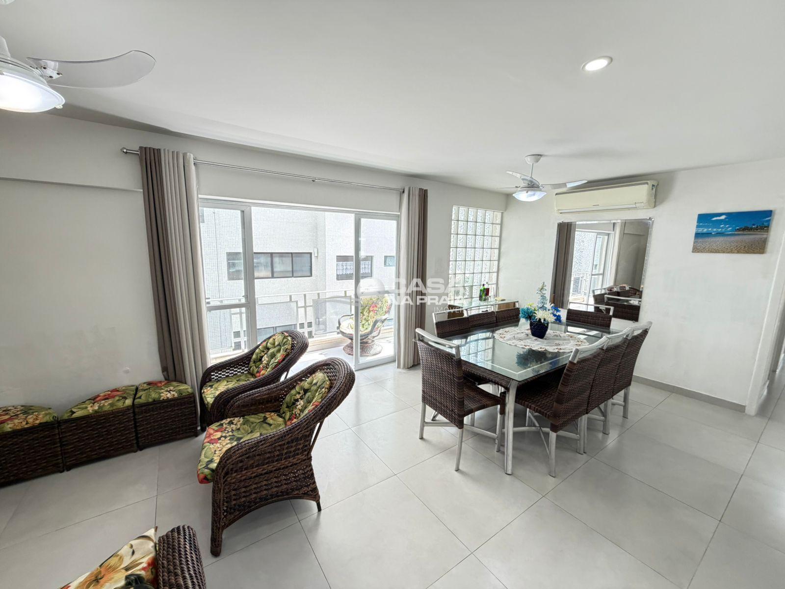 O imóvel conta com 03 dormitórios, sendo 01 suíte, sala de estar com sacada, cozinha, área de serviço e dependência de empregada. Possui ainda banheiro social e banheiro de serviço, oferecendo ótima funcionalidade para o dia a dia ou uso em temporada.
