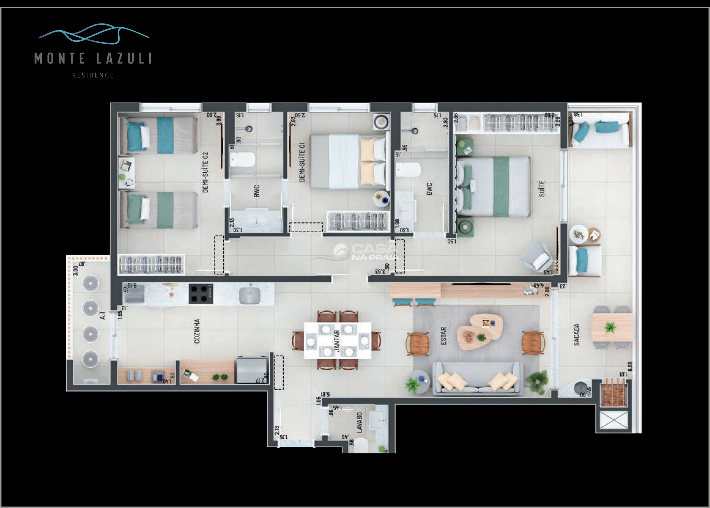 1 suíte + 2 demi-suítes 100, 102 e 111 m² privativas
